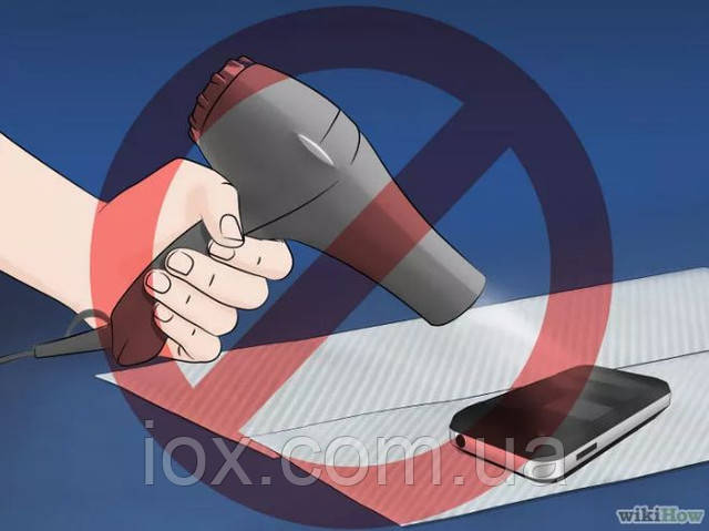 Важливо! Не можна використовувати фен з метою просушування телефону. Волога під впливом повітряного потоку може потрапити ще глибше всередину телефону, що ще більше погіршить його стан. Також гаряче повітря може пошкодити деякі деталі телефону. -