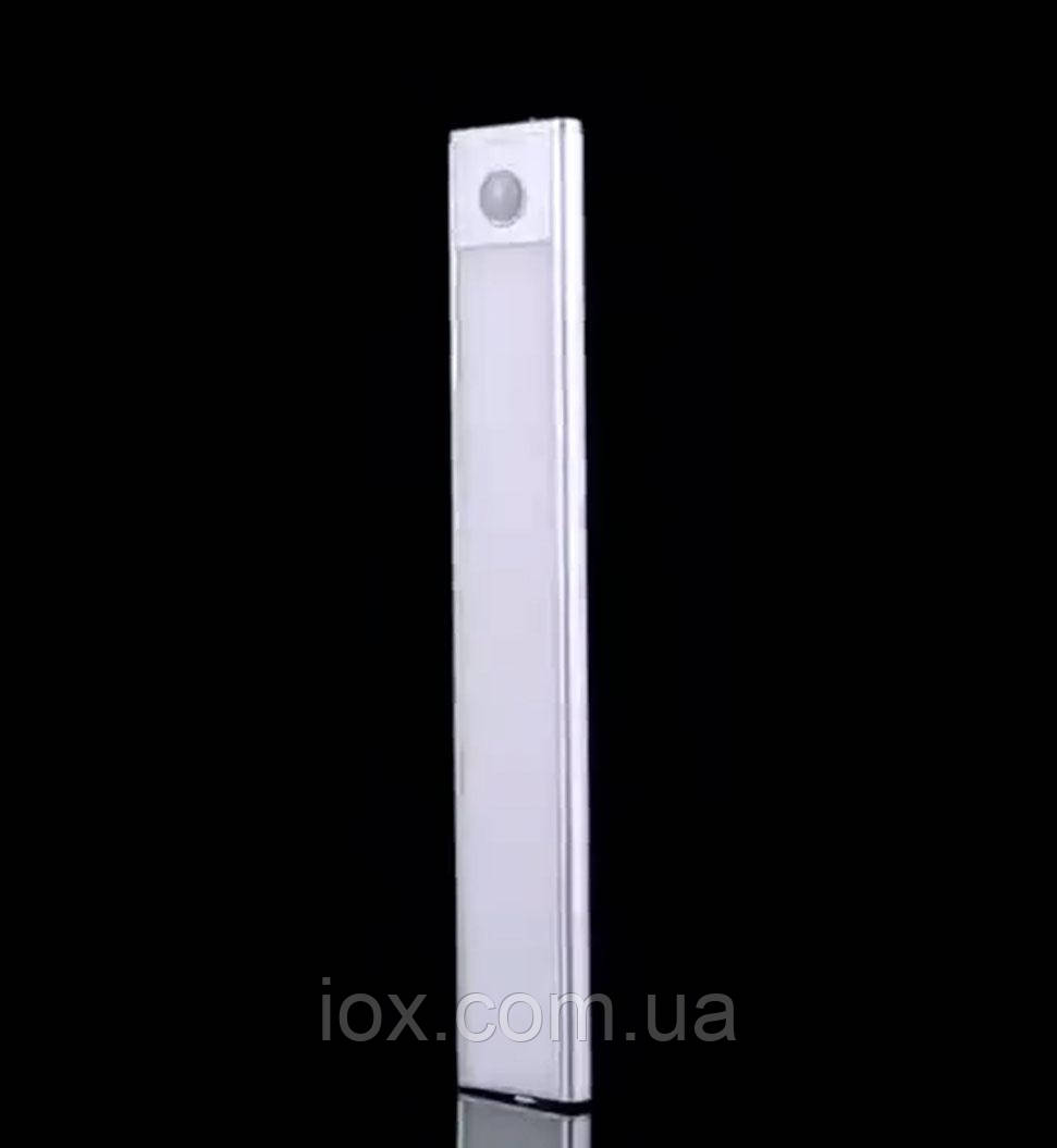 Лампа Нічник із датчиком руху, акумулятор, USB, світлодіодний, ультратонкий, сріблястий 30 см
